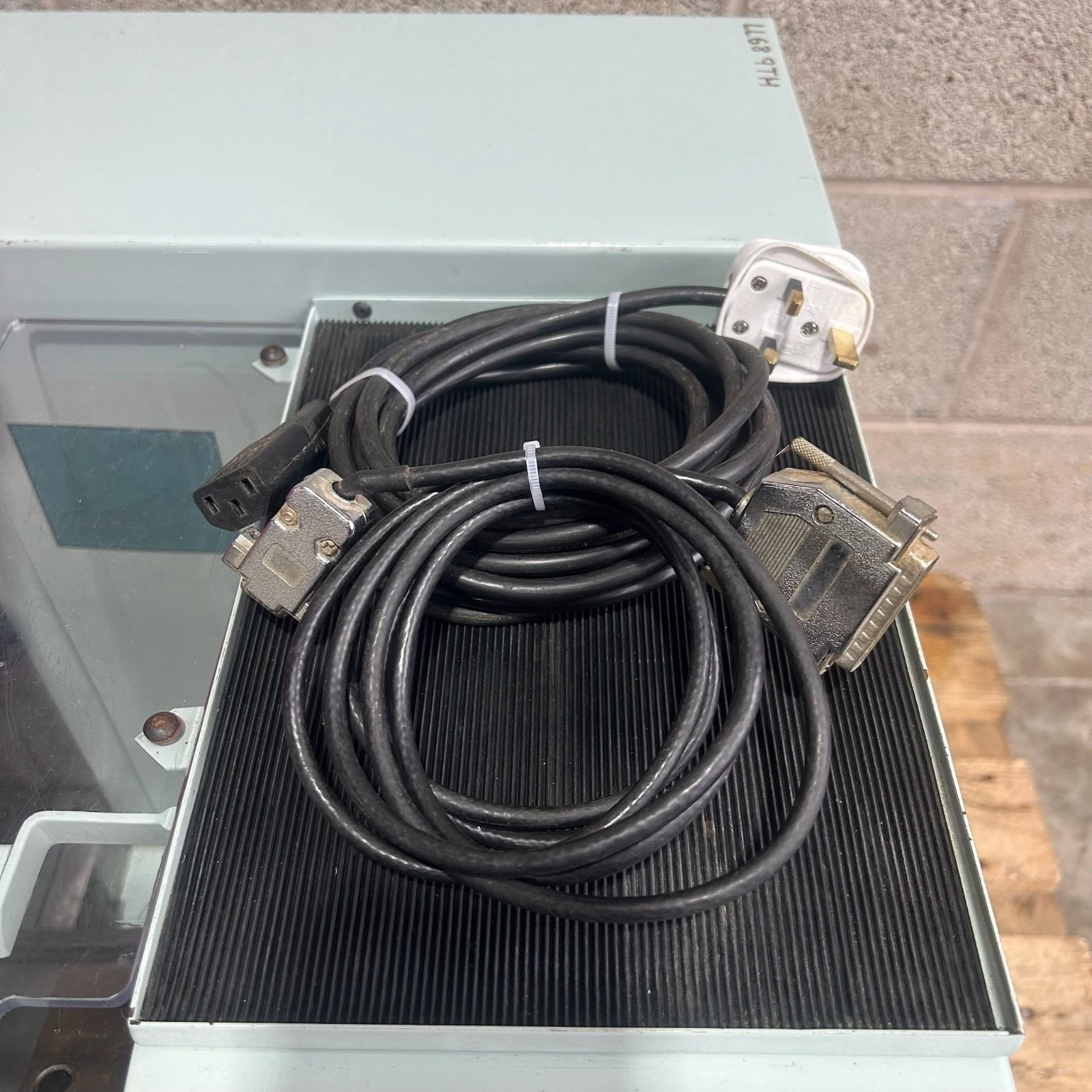 Supplied with power cable and computer cable. Connects to the computer via Serial cable but you can use a good quality Serial to USB converter.
