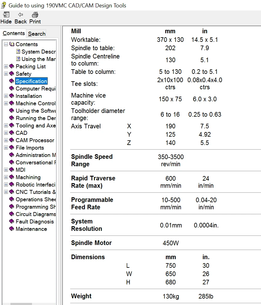 Supplied with a copy of the Boxford CAD/CAM Software. We can supply this machine with a laptop with the software loaded onto it for around £200 depending on the price of the laptop.