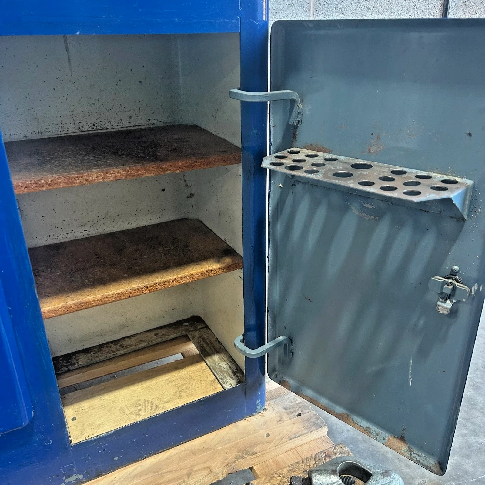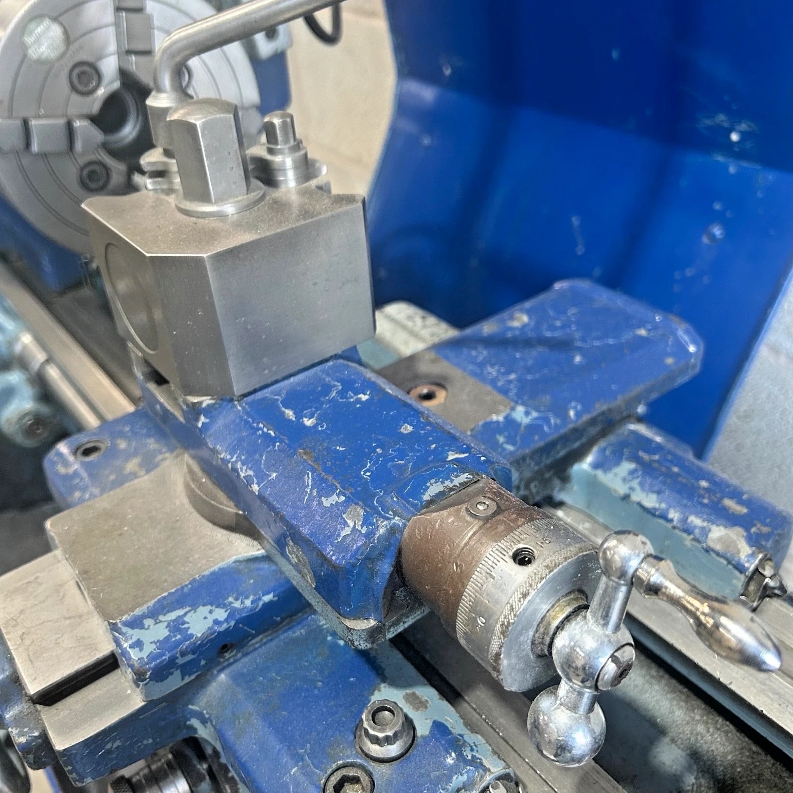 Cosmetically, the machine is not its best. It has been repainted in a darker blue which has not been done all over. We don’t like to paint machines as this can hide their true condition but this machine would suit a paint touch up with the original smoke grey colour.