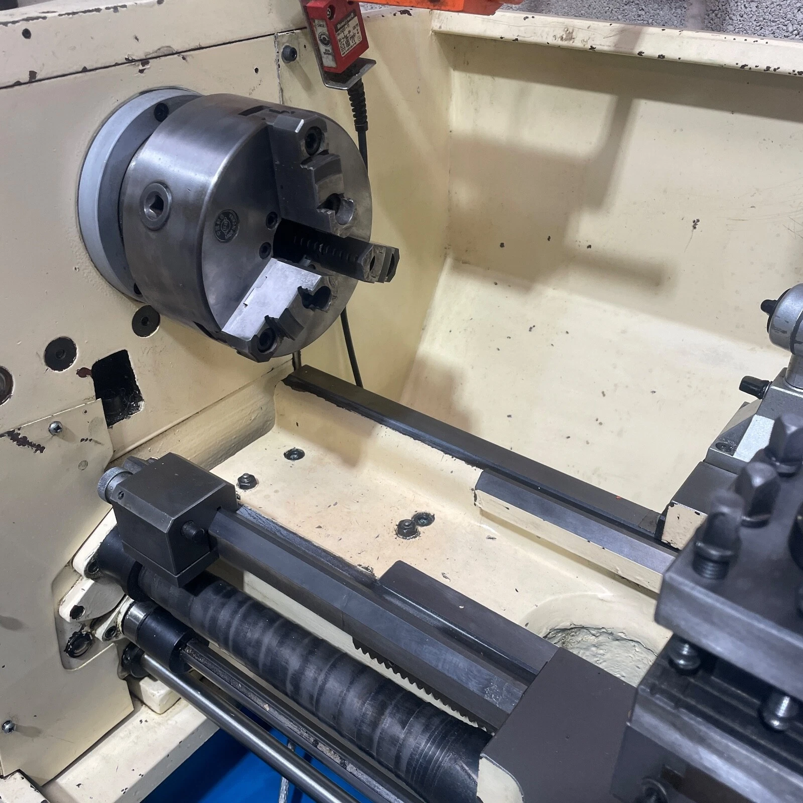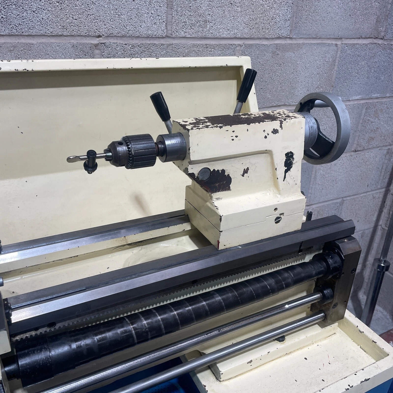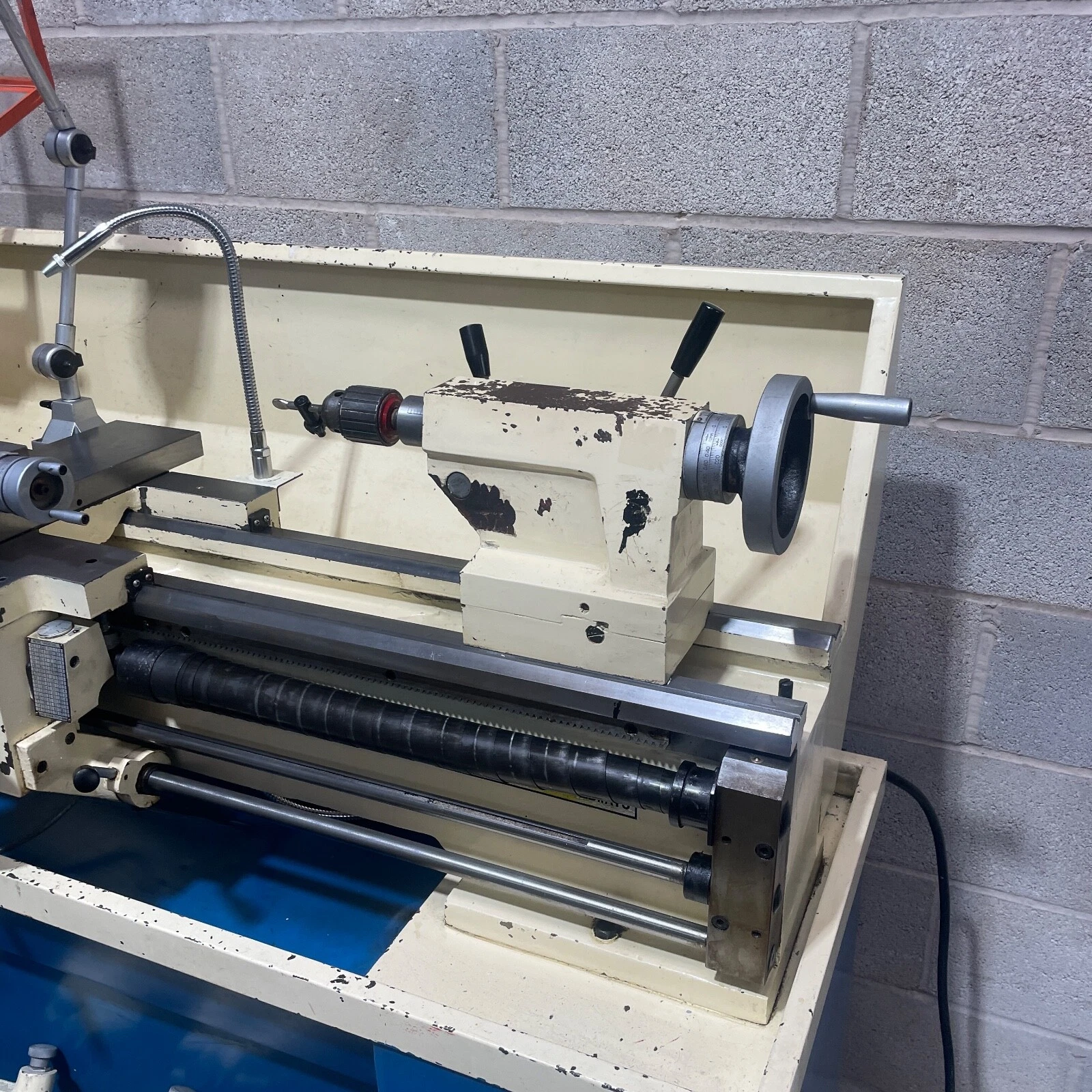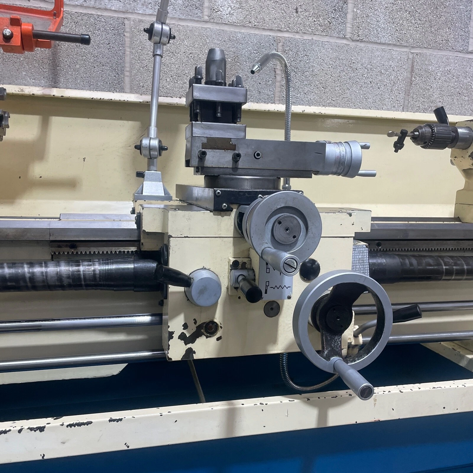 Fitted with a 4 way tool post, machine light, coolant pump, thread dial indicator, micrometer bed stop and leadscrew guards.