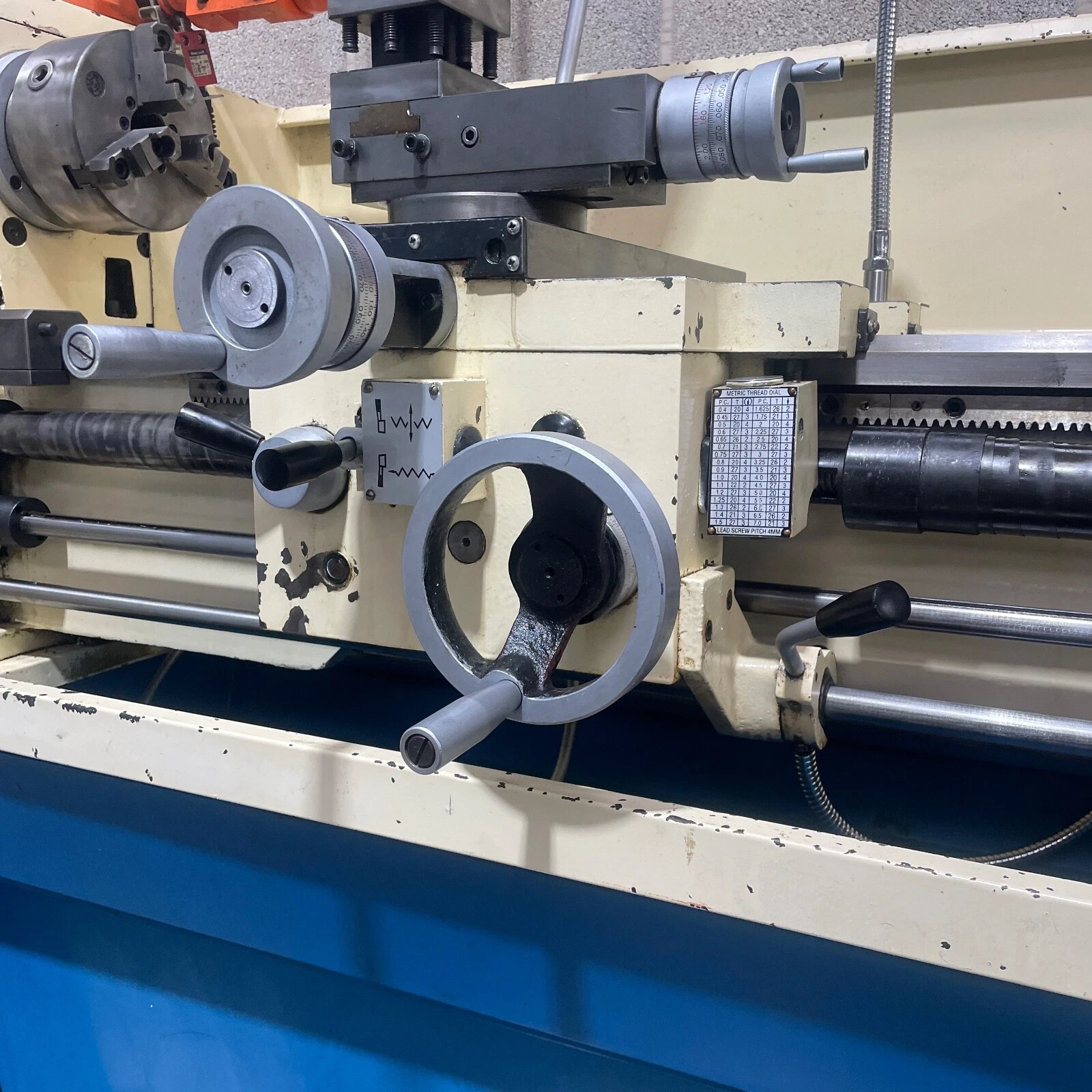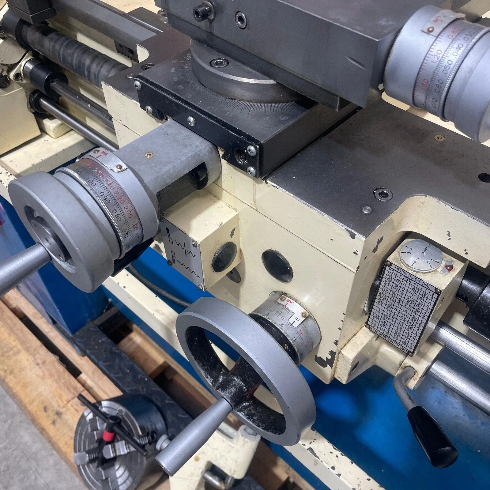 3 Phase. Metric and imperial graduations and screwcutting. Power feeds on both axis.