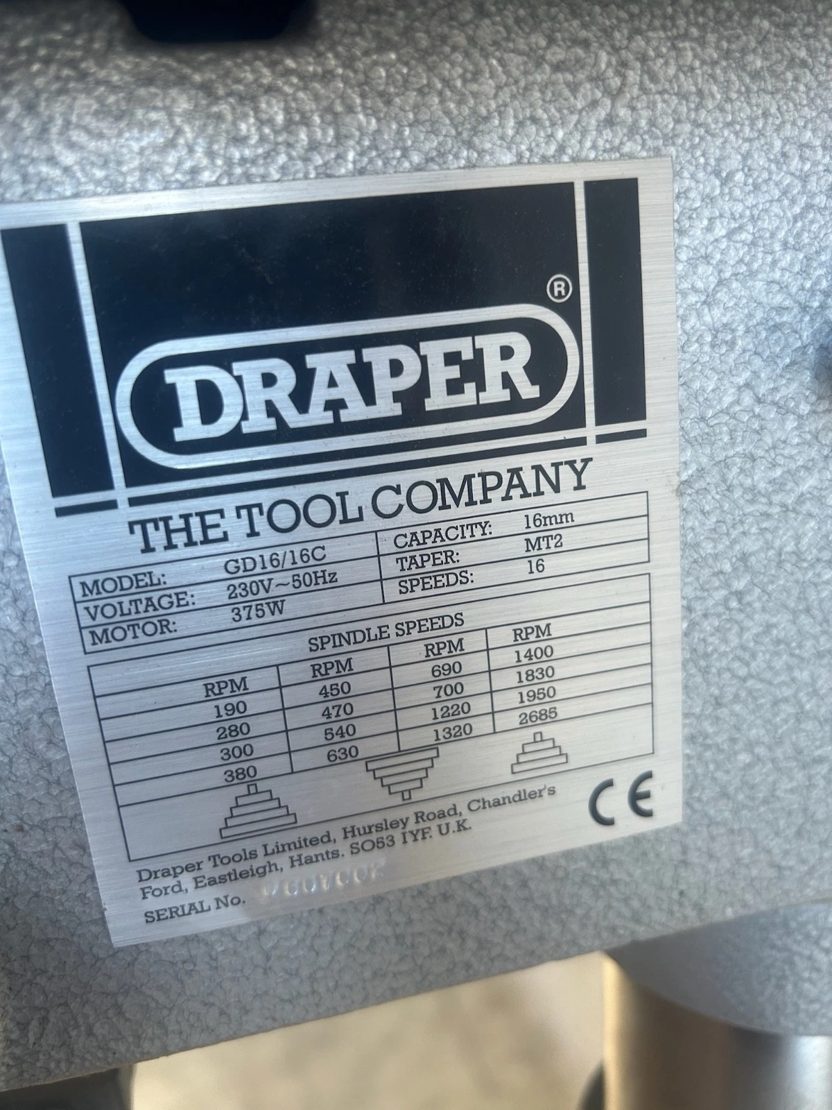 Draper GD16 Drill Press 230v 16mm