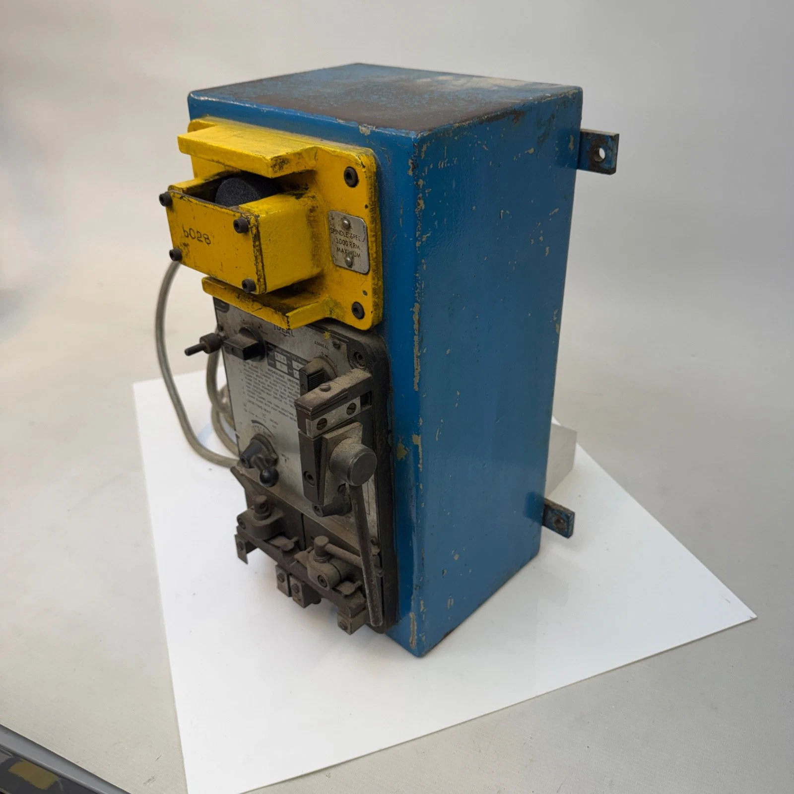 The original switch handle on the side for the grinder has been replaced with a homemade knob.